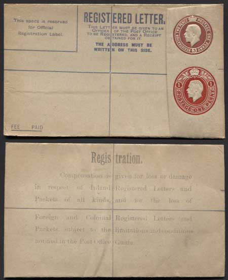 RP32 KGV 3d and 1d Registered Envelope size F Mint
