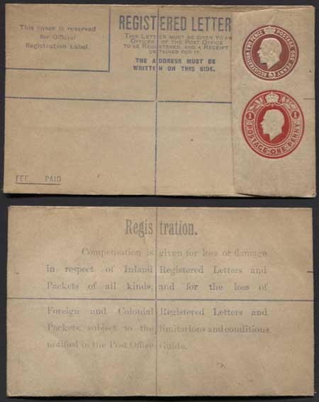 RP32 KGV 3d and 1d Registered Envelope size F Mint