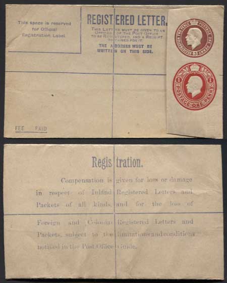 RP32 KGV 3d and 1d Registered Envelope size F Mint