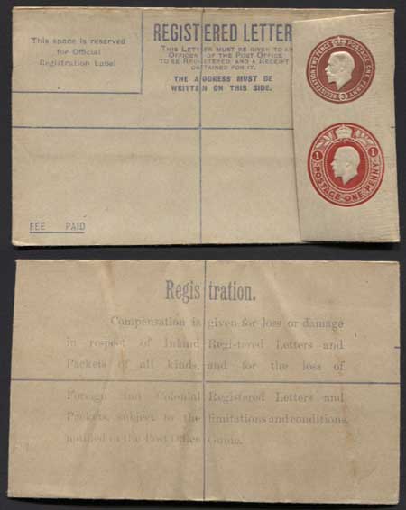 RP32 KGV 3d and 1d Registered Envelope size F Mint