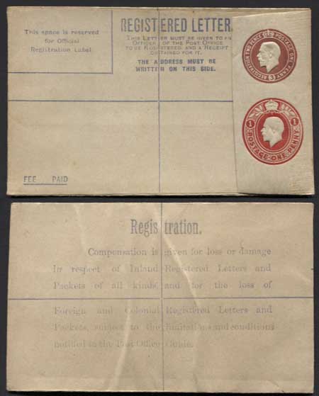 RP32 KGV 3d and 1d Registered Envelope size F Mint
