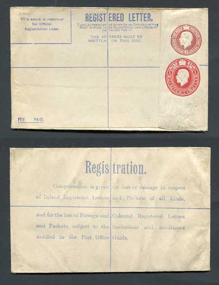 RP32a KGV 3d and 1d Compound Registered Envelope Size G Format RF9a Mint