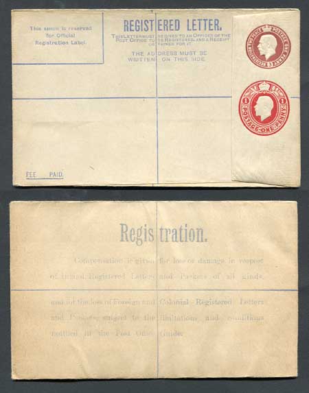 RP32a KGV 3d and 1d Compound Registered Envelope Size G Format RF9a Mint