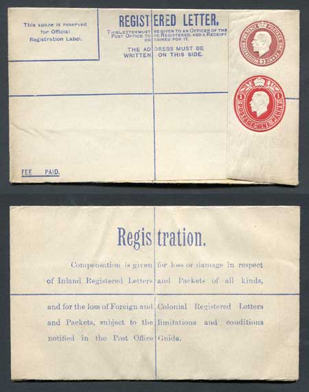 RP32a KGV 3d and 1d Compound Registered Envelope Size G Format RF9a Mint