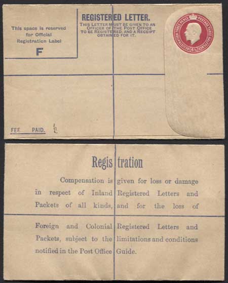 RP40 KGV 4 1/2d Puce Registered Envelope Size F Foreign and Colonial on Back Mint