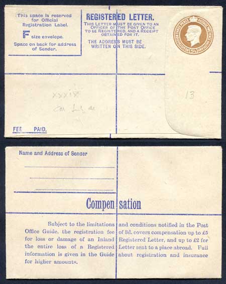 RP54 KGVI 5 1/2d Brown Registered Envelope Size F Mint
