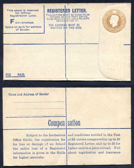 RP54 KGVI 5 1/2d Brown Registered Envelope Size F Mint