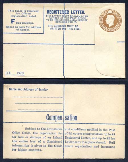 RP54 KGVI 5 1/2d Brown Registered Envelope Size F Mint