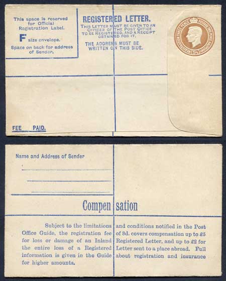 RP54 KGVI 5 1/2d Brown Registered Envelope Size F Mint