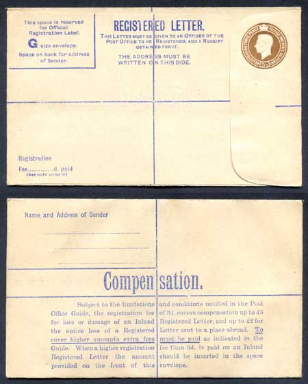 RP59 KGVI 5 1/2d Registered Envelope Size G McCorquodale and Co Ltd Under Flap