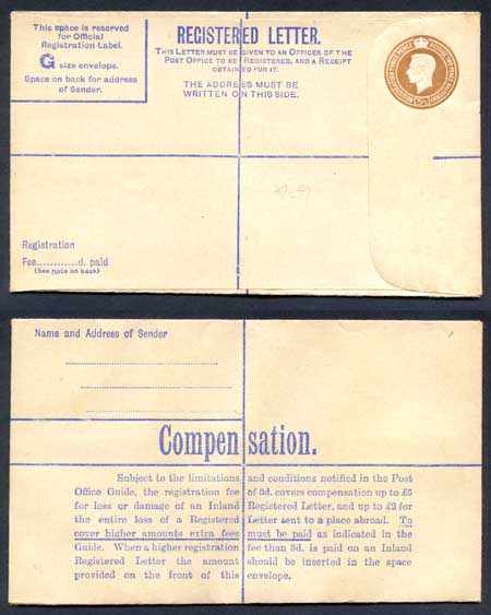 RP59 KGVI 5 1/2d Registered Envelope Size G McCorquodale and Co Ltd Under Flap