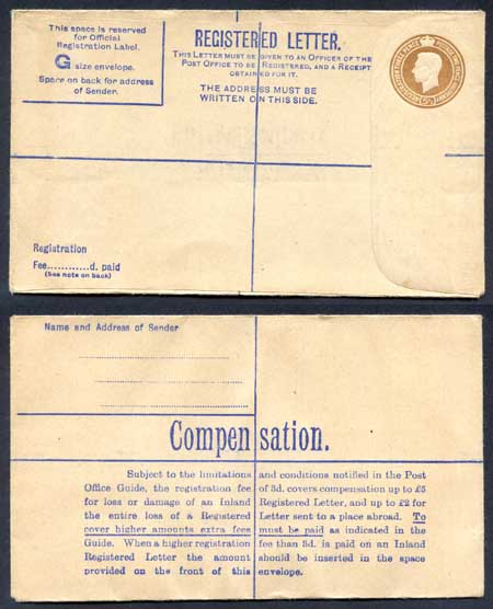 RP59 KGVI 5 1/2d Registered Envelope Size G McCorquodale and Co Ltd Under Flap