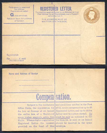 RP59 KGVI 5 1/2d Registered Envelope Size G McCorquodale and Co Ltd Under Flap