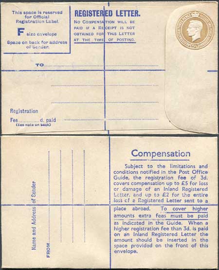 RP63 KGVI 5 1/2d Brown Post Office Issue Registered Envelope Size F Mint
