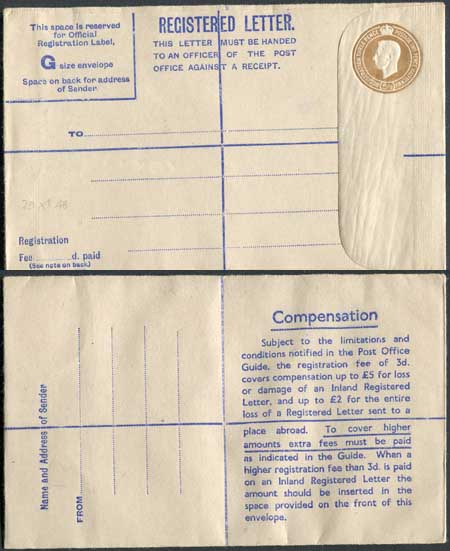 RP66 KGVI 5 1/2 Brown Registered Envelope Size G Mint