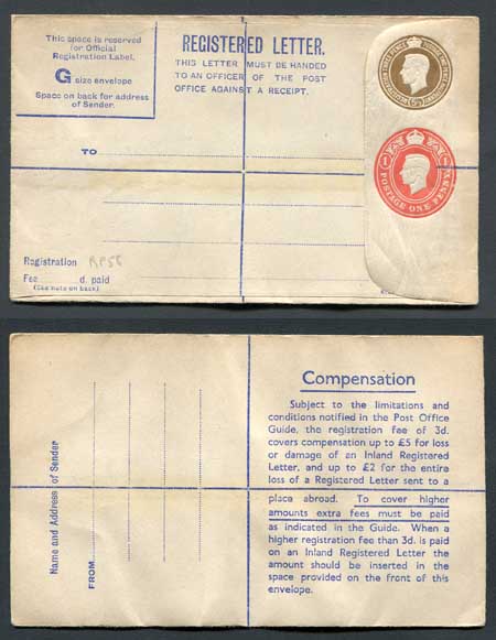 RP67 KGVI 5 1/2d and 1d Compound Registered Envelope Mint