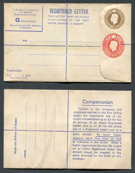 RP67 KGVI 5 1/2d and 1d Compound Registered Envelope Mint