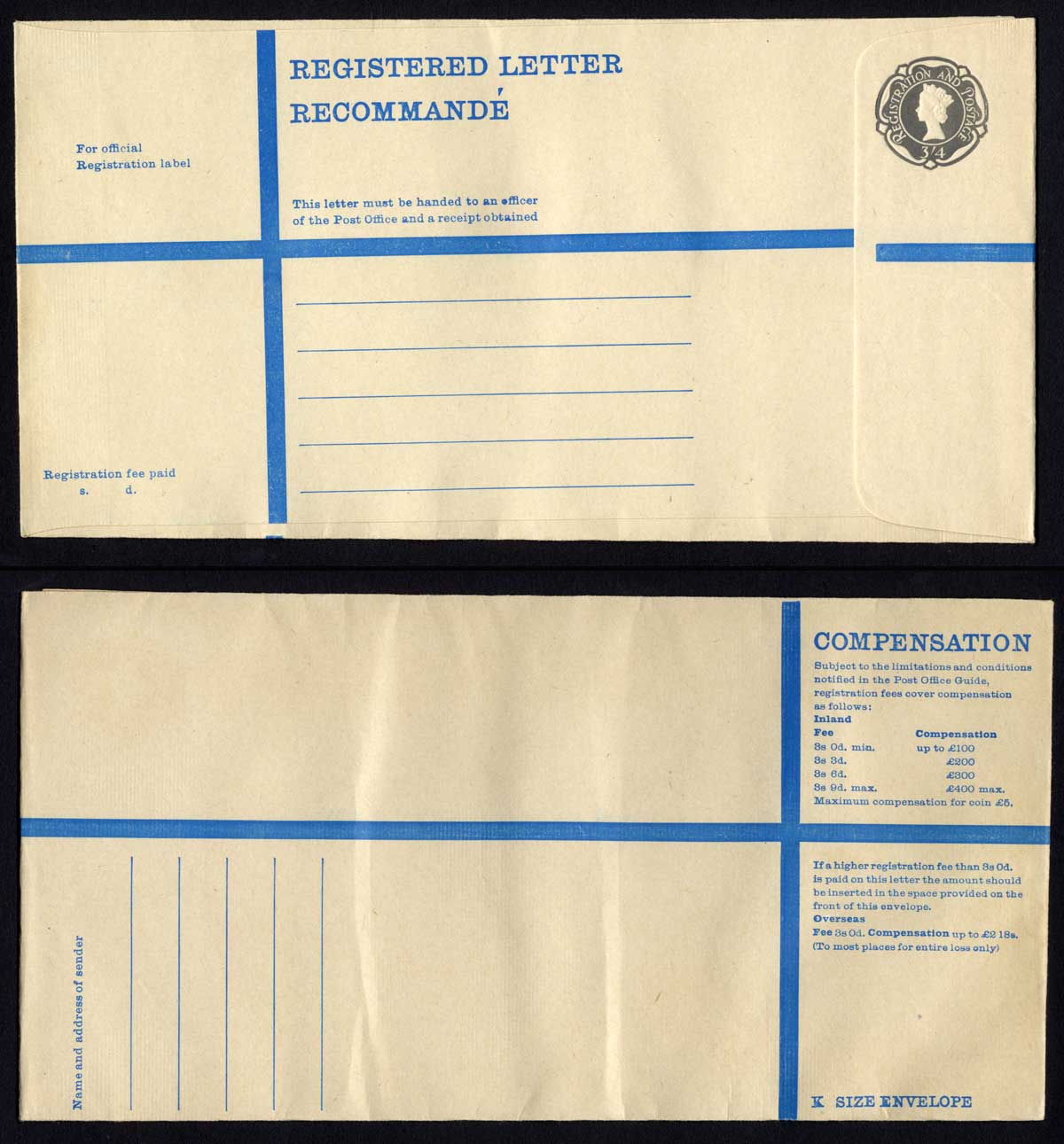 RP89 3/4 Grey Post Office Registered Envelope Size G Mint with band