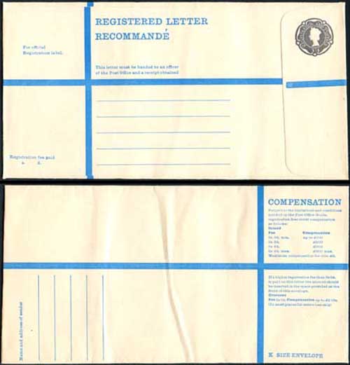 RP89 3/4 Grey Post Office Registered Envelope Size K Mint