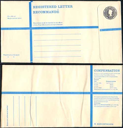 RP89 3/4 Grey Post Office Registered Envelope Size K Mint