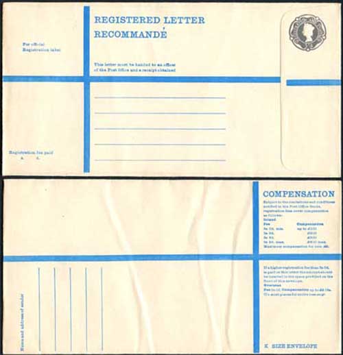 RP89 3/4 Grey Post Office Registered Envelope Size K Mint
