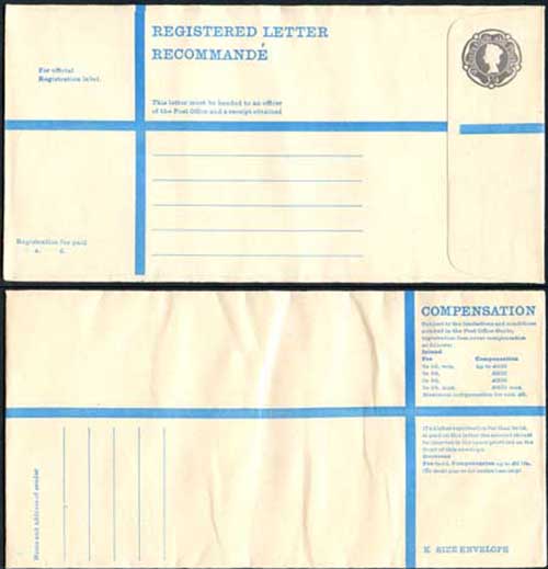 RP89 3/4 Grey Post Office Registered Envelope Size K Mint