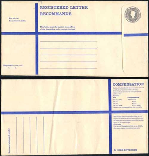 RP89 3/4 Grey Post Office Registered Envelope Size K Mint