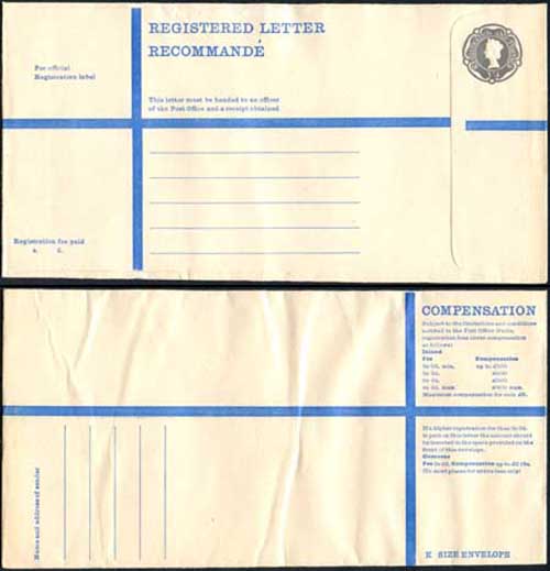 RP89 3/4 Grey Post Office Registered Envelope Size K Mint