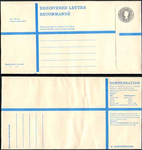 RP89 3/4 Grey Post Office Registered Envelope Size K Mint