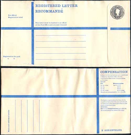 RP89 3/4 Grey Post Office Registered Envelope Size K Mint