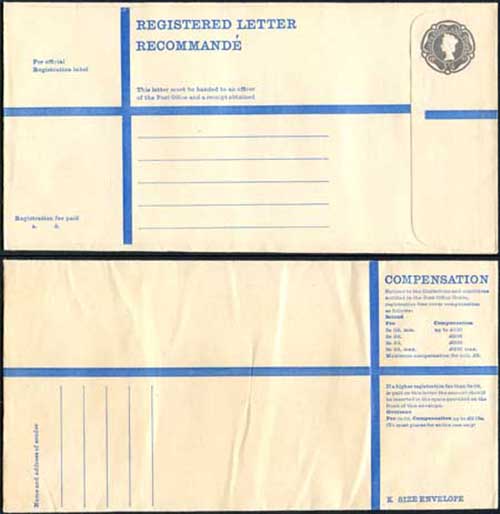 RP89 3/4 Grey Post Office Registered Envelope Size K Mint
