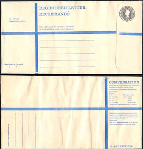RP89 3/4 Grey Post Office Registered Envelope Size K Mint
