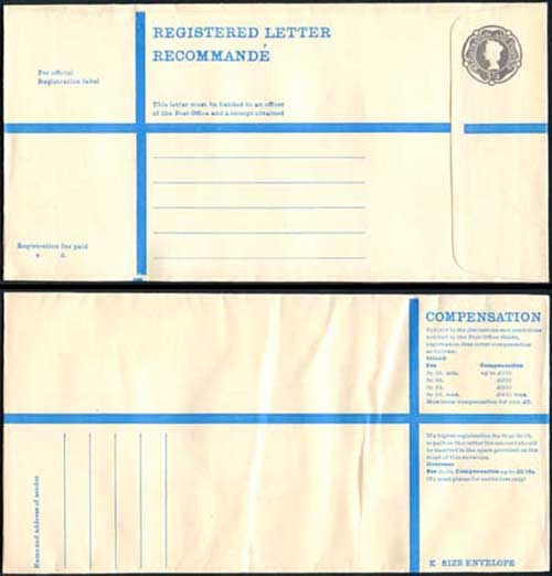 RP89 3/4 Grey Post Office Registered Envelope Size K Mint