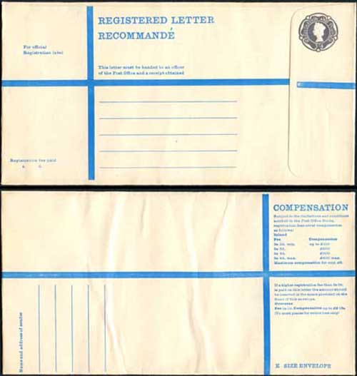 RP89 3/4 Grey Post Office Registered Envelope Size K Mint