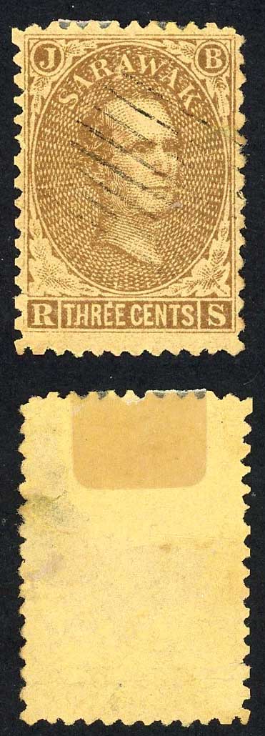 Sarawak SG1 3c Brown/yellow used with 9 Bar pmk Very Scarce Cat 250 pounds