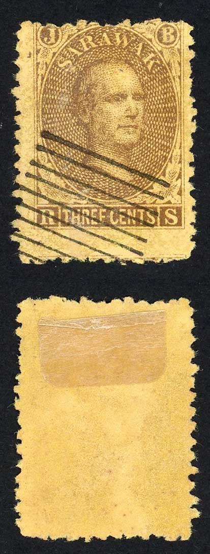 Sarawak SG1 3c Brown/yellow used with 9 Bar pmk Very Scarce Cat 250 pounds