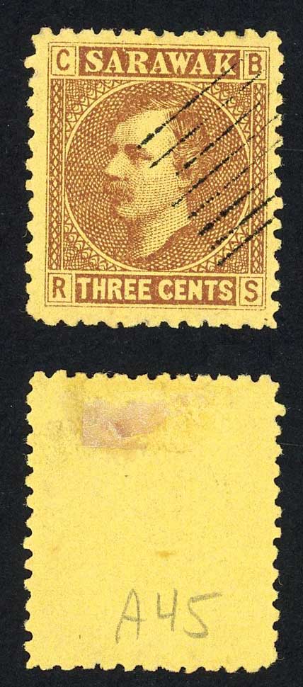 Sarawak SG2 3c Brown/yellow 9 Bar pmk RARE on this issue
