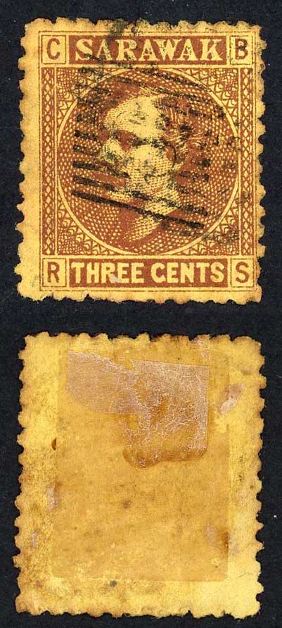 Sarawak SG2 3c Brown/yellow 9 Bar pmk RARE on this issue