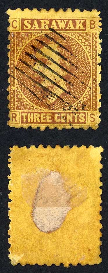 Sarawak SG2 3c Brown/yellow 9 Bar pmk RARE on this issue