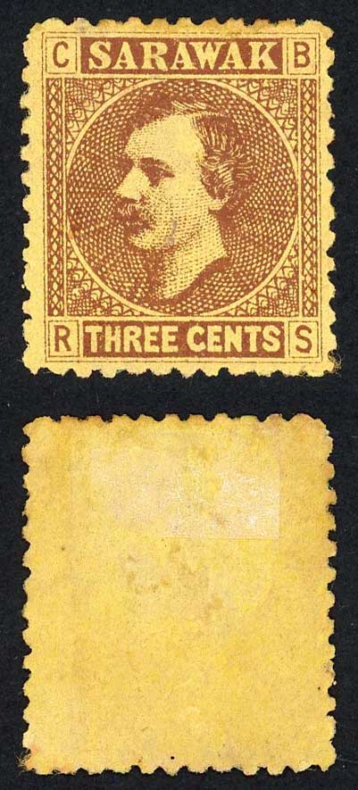 Sarawak SG2 3c Brown/yellow M/M (a scarce stamp with gum)