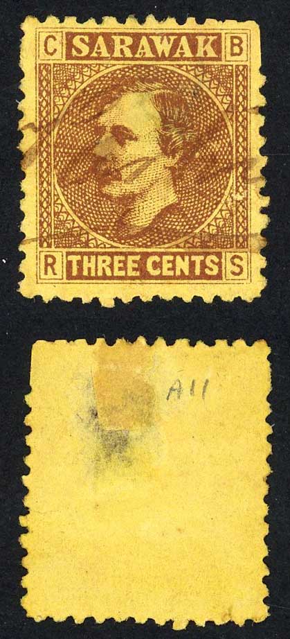 Sarawak SG2 3c Brown/yellow Manuscript Cancel