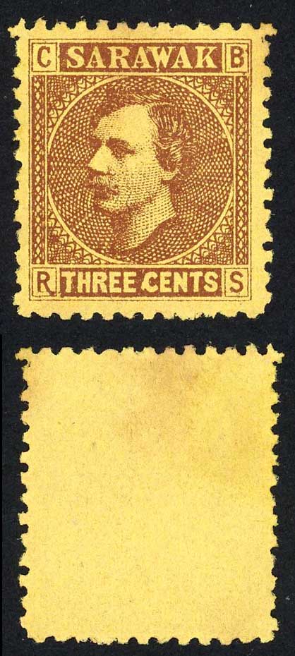 Sarawak SG2 3c Brown/yellow Mint (no gum as normal) Long Tailed R (9/10)