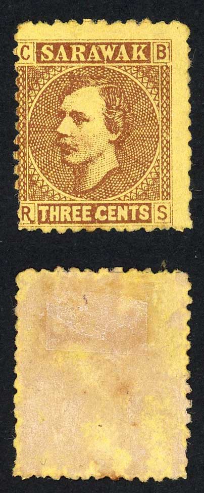 Sarawak SG2 3c Brown/yellow Mint (no gum as normal) Long Tailed R (9/10)