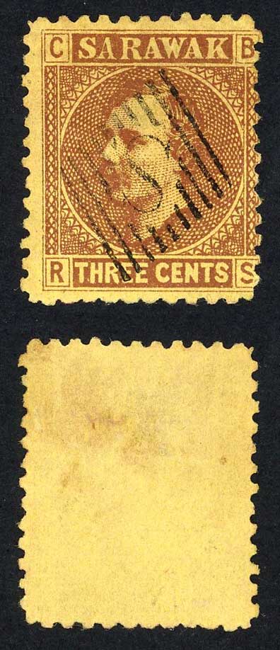Sarawak SG2 3c Brown/yellow S in Diamond cancellation Narrow A