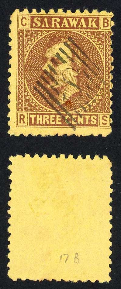 Sarawak SG2 3c Brown/yellow S in Diamond cancellation Pane B Narrow A
