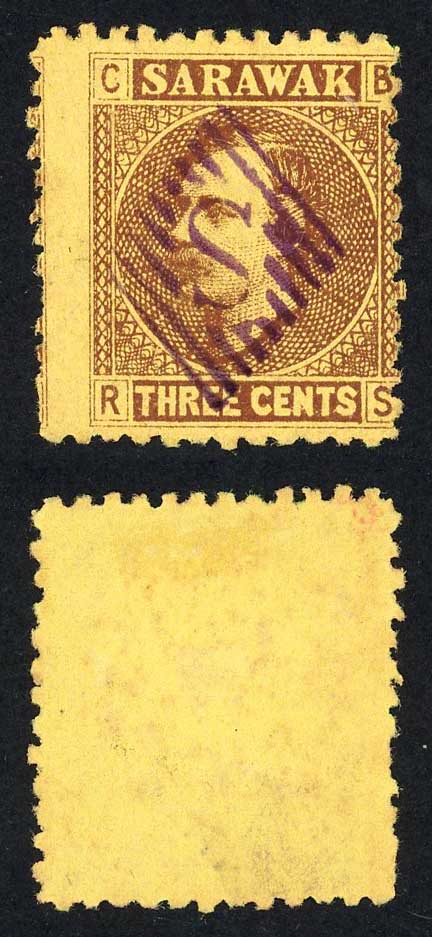 Sarawak SG2 3c Brown/yellow S in Diamond cancellation