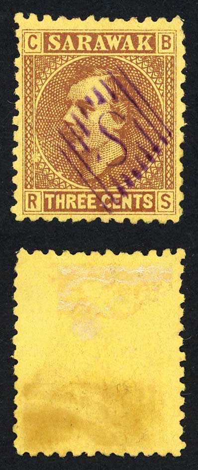 Sarawak SG2 3c Brown/yellow S in Diamond VIOLET cancellation