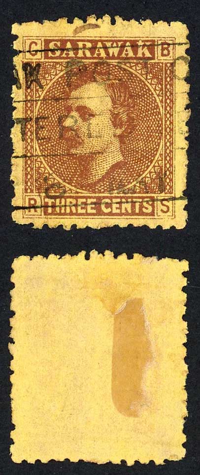 Sarawak SG2 3c Brown/yellow Three tiered Boxed Registration Cancel