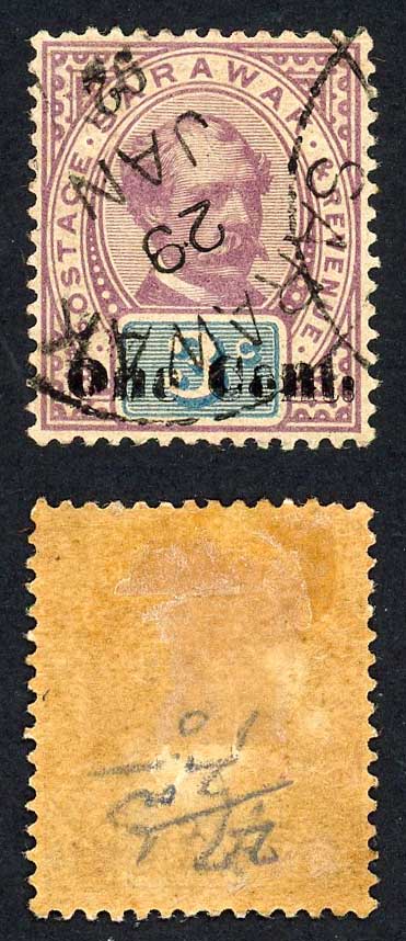 Sarawak SG22a 1c on 3c purple and blue (1st type) DOUBLE Overprint Cat 600 pound