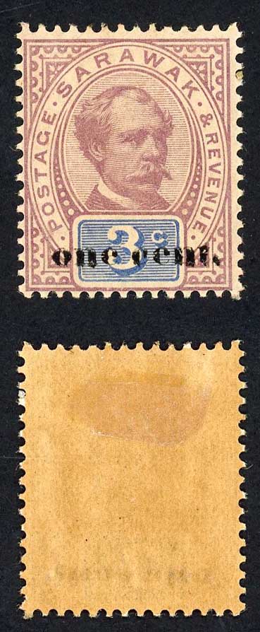 Sarawak SG23 1c on 3c (2nd type) Mint t taller